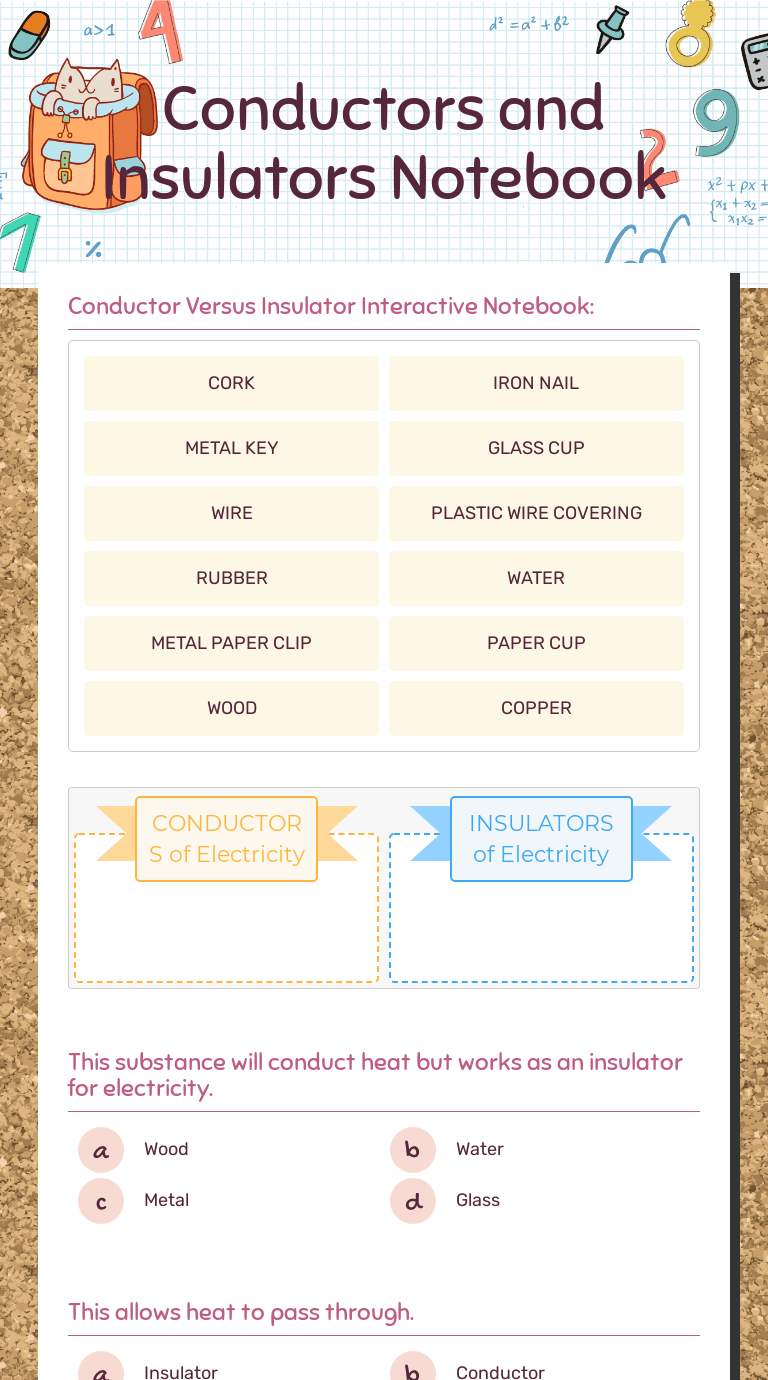 Hand out the worksheet (included below). Insulators grade 4 teacher background conductors allow electricity flow through them. "conductors and insulators" student record sheet; Including presentations, worksheet printables, projects, interactive activities, . Insulators are materials that block the flow of heat, while conductors are.